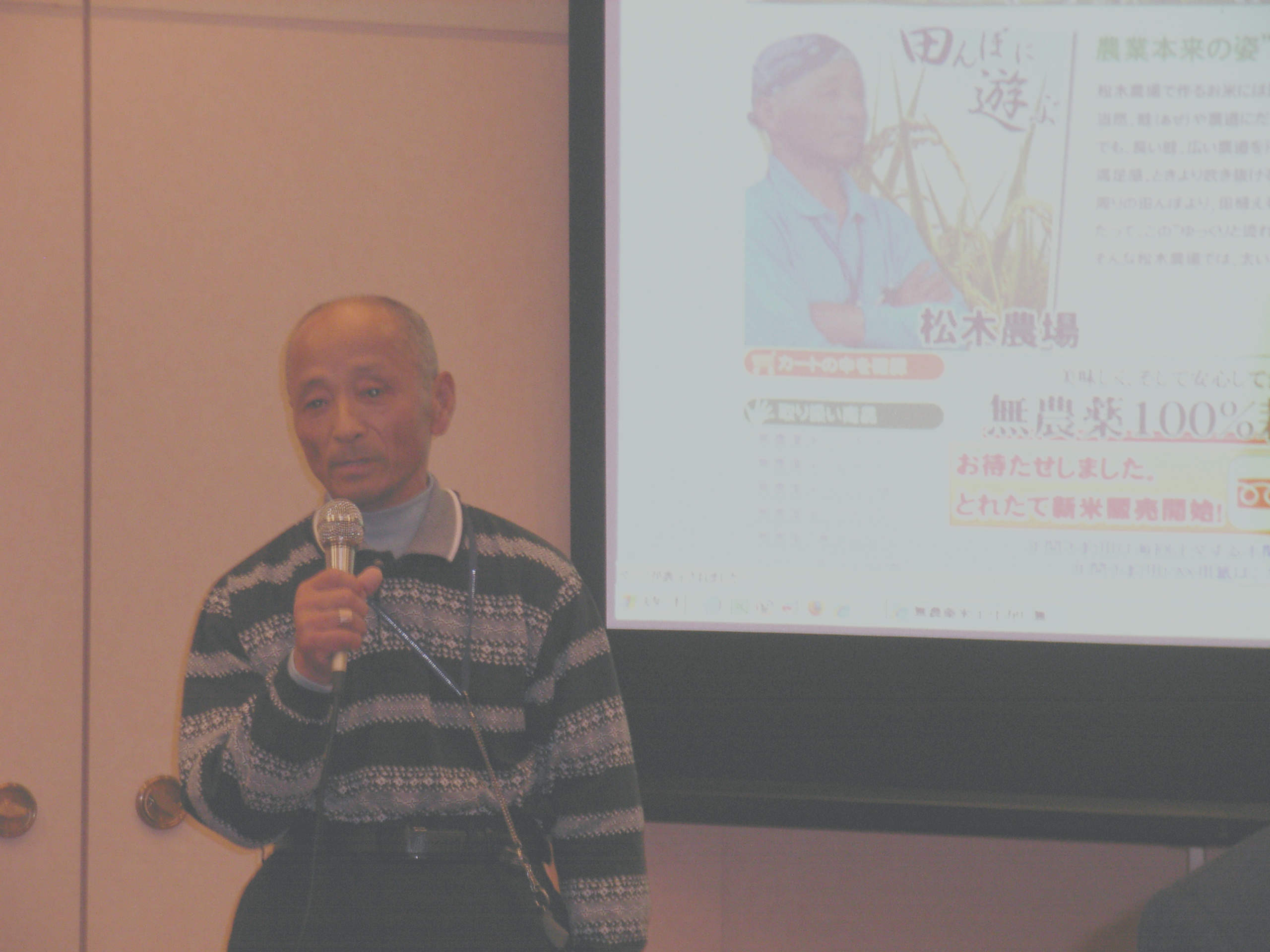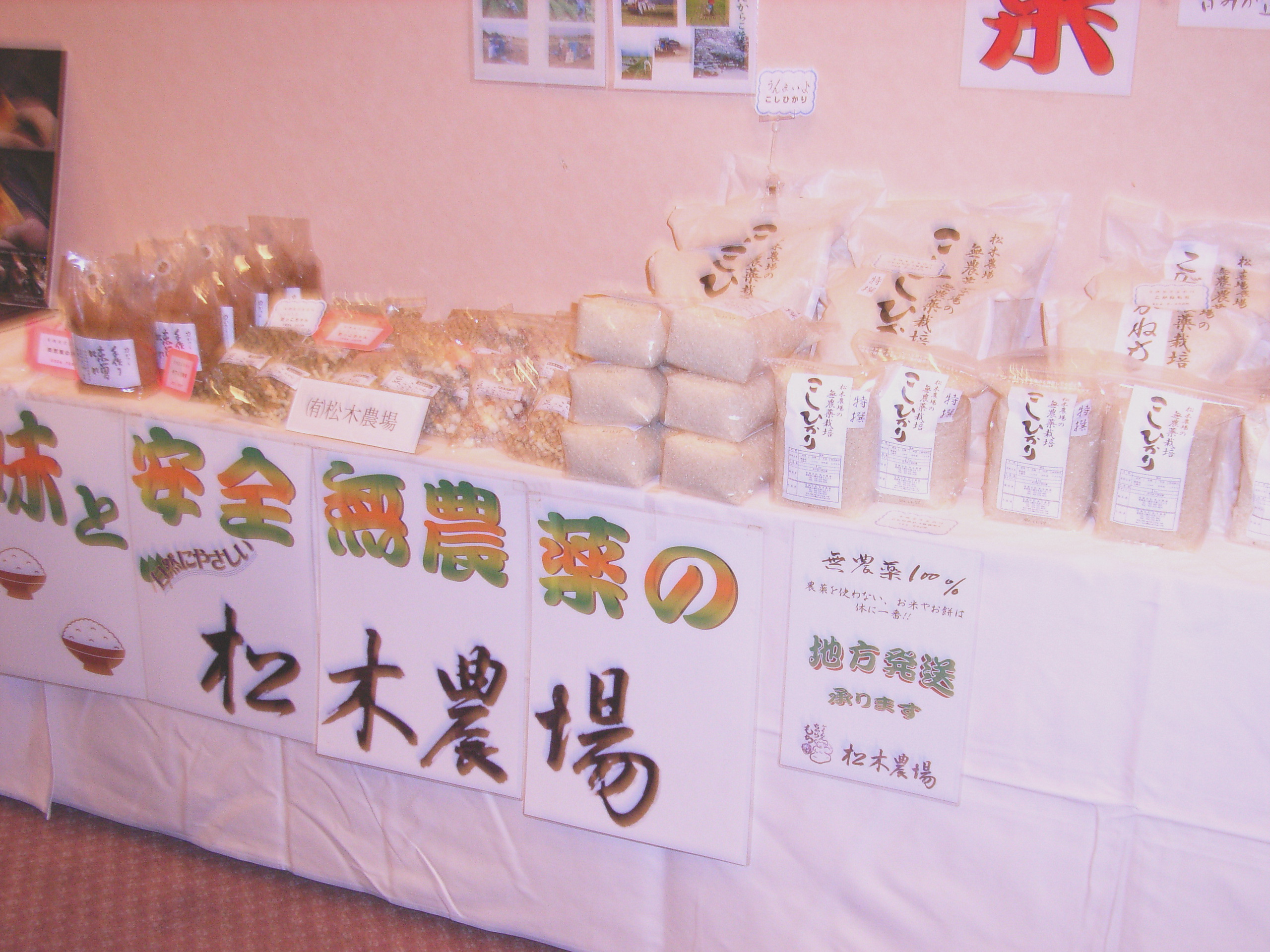 松木農場の商品を陳列し、講演会後に企業紹介等で