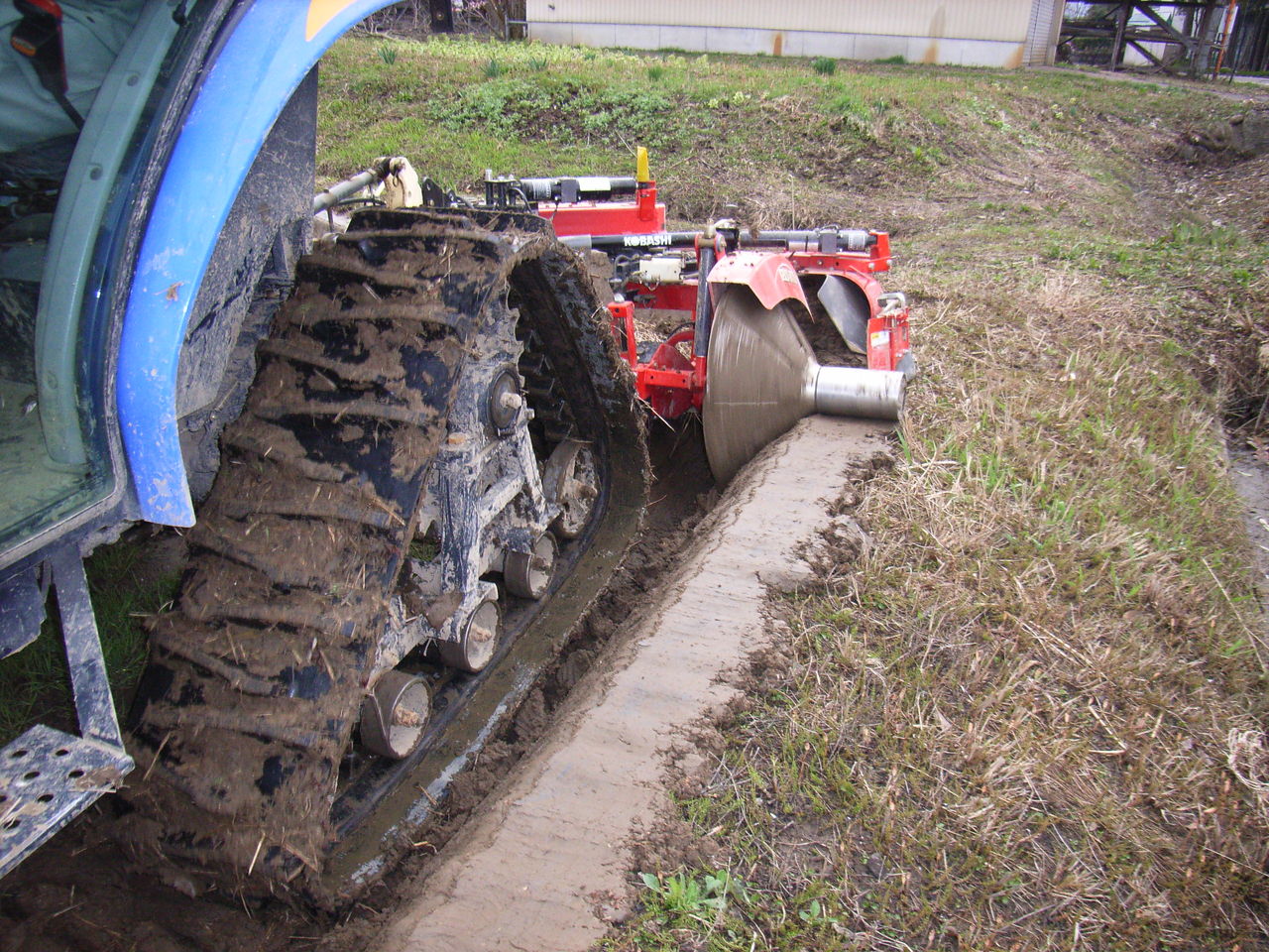 深層部分の土を反転させる作業を、トラクターで行ないます。