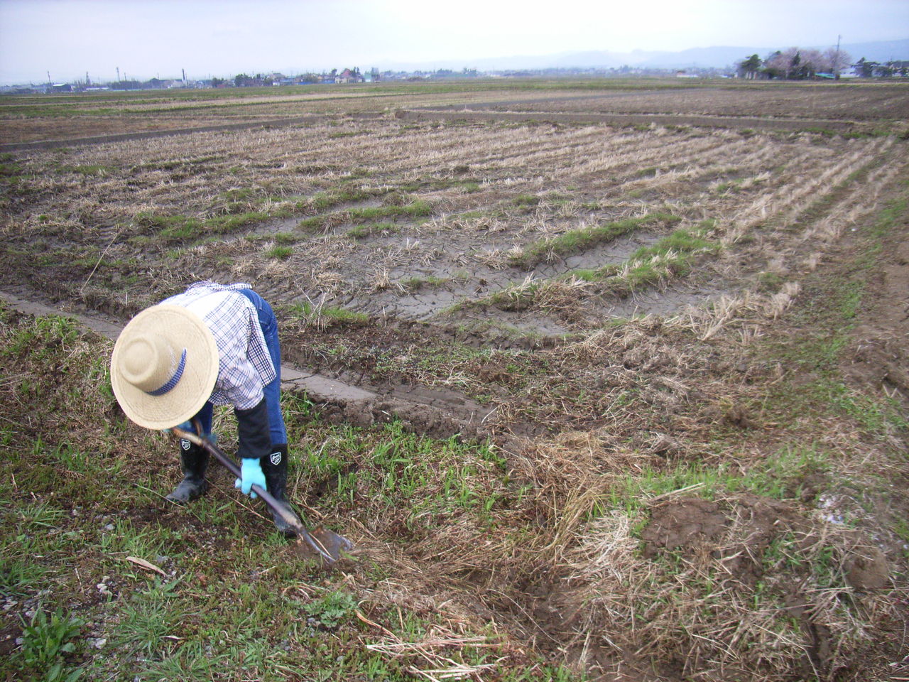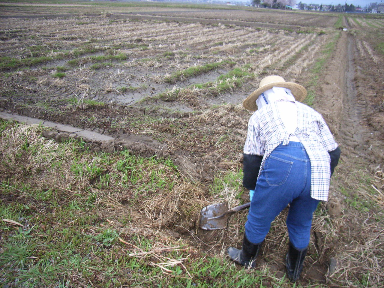 農場では、これから田んぼの土をすき起こし、表面部分の土と