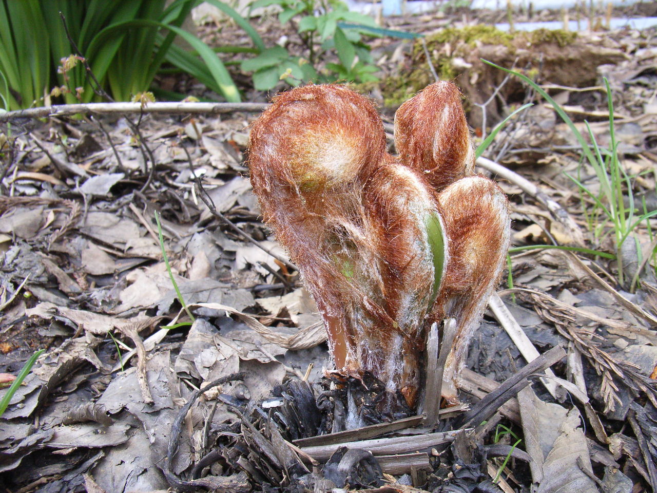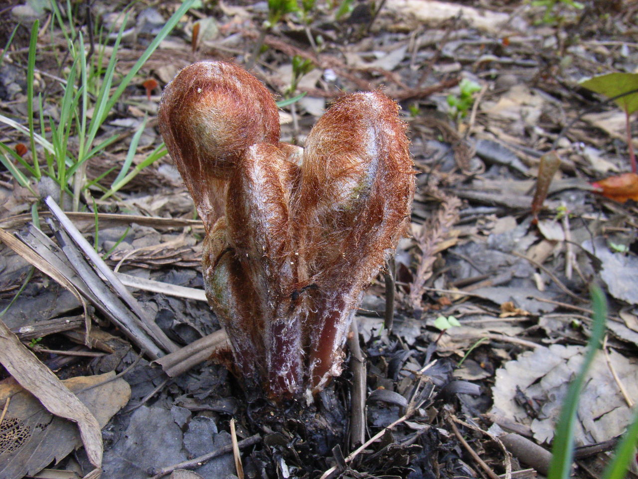 庭先を覗くと、ゼンマイが寄り添いながら出ていました。