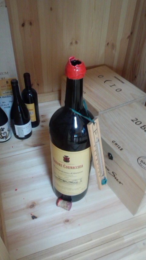 猛暑に耐え切れず、秘蔵の5リットルマグナムのワインのコルクがぶっ飛んでいました(涙)