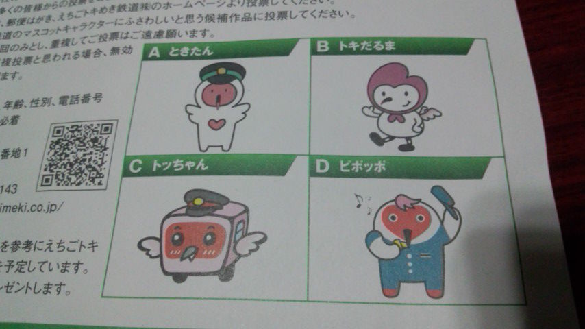 えちごトキめき鉄道ではマスコット候補が出ています。
