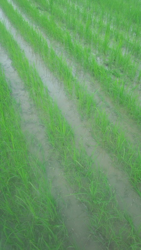 太陽が隠れ雨が降った時の稲の緑が最高に綺麗です。