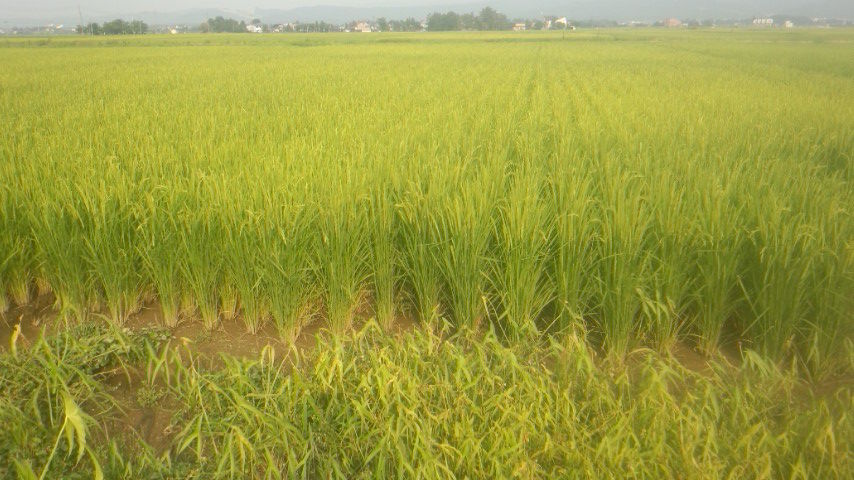 田んぼで一番高い所を制した植物が最終的に元気になります。